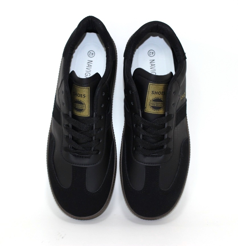 Чорні чоловічі комбіновані із замшею кросівки на плоскій підошві. - якісне спортивне взуття для чоловіків