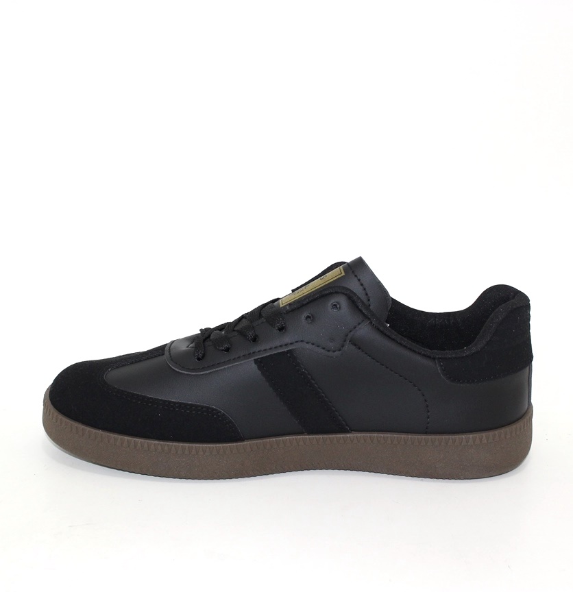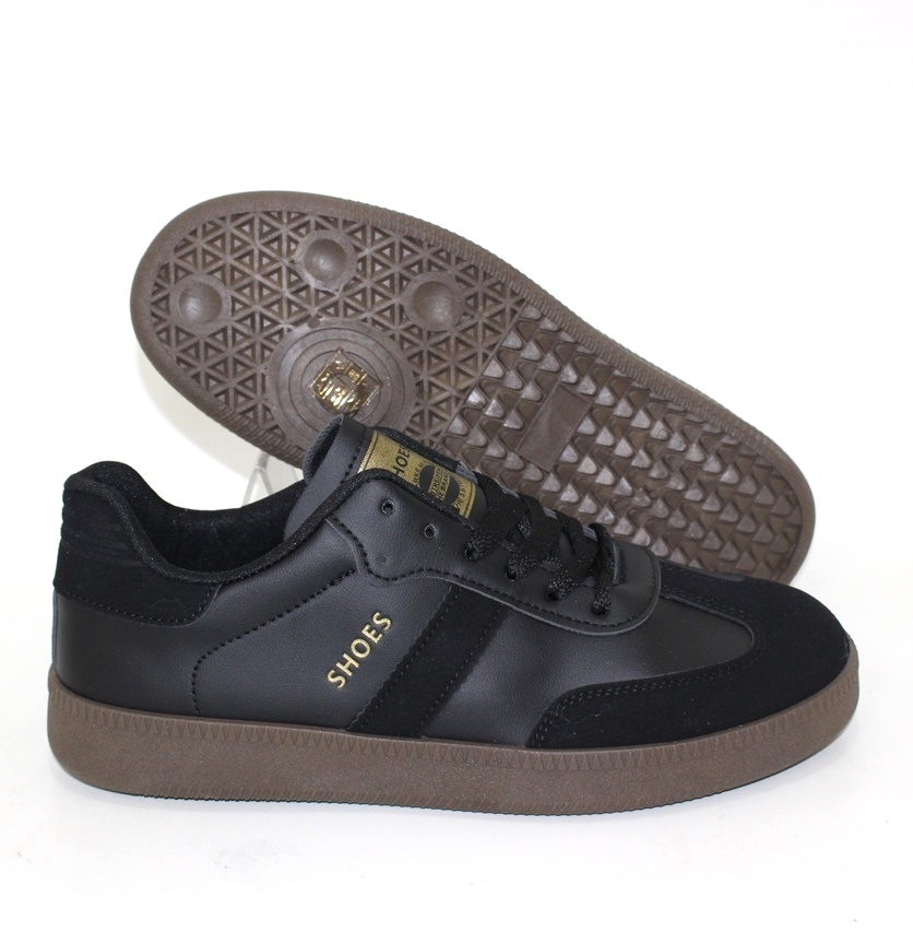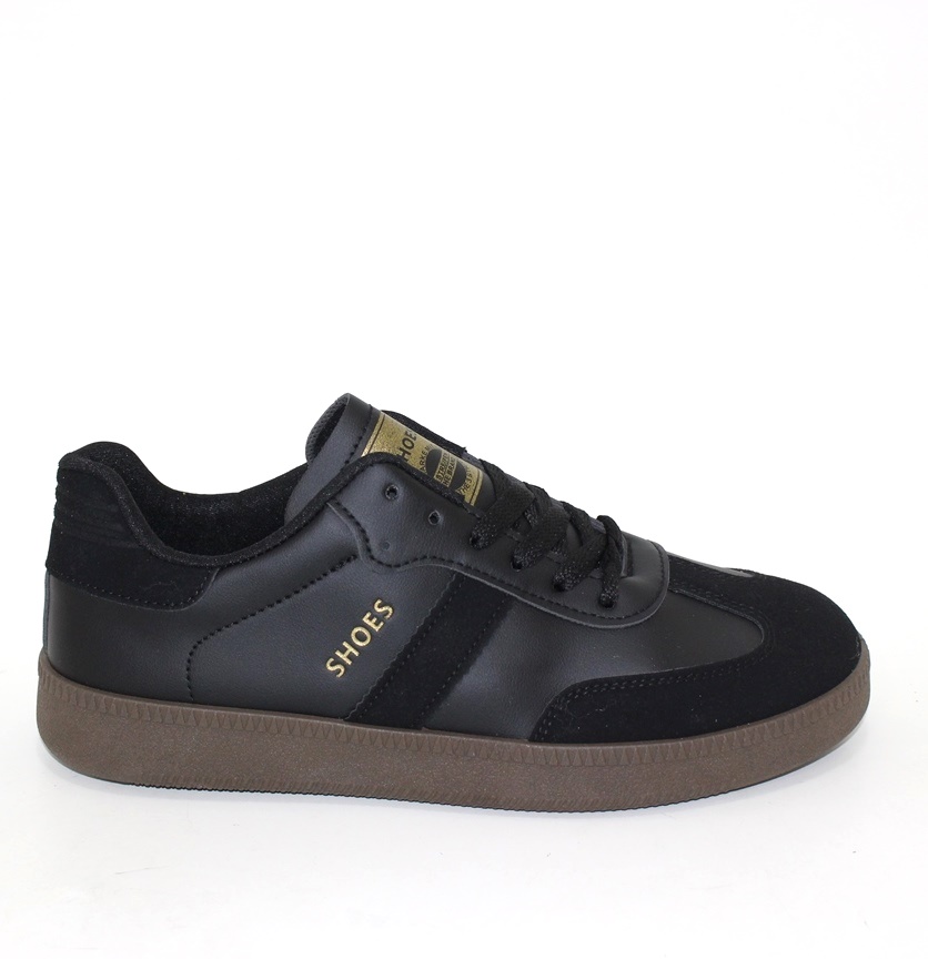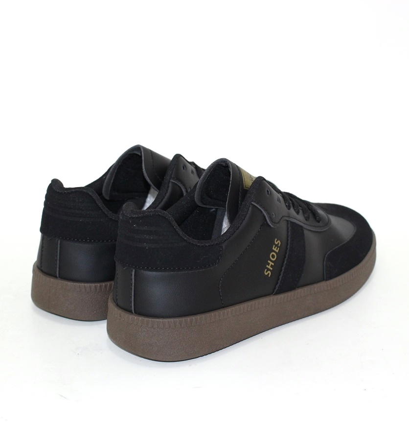 Чорні чоловічі комбіновані із замшею кросівки на плоскій підошві.