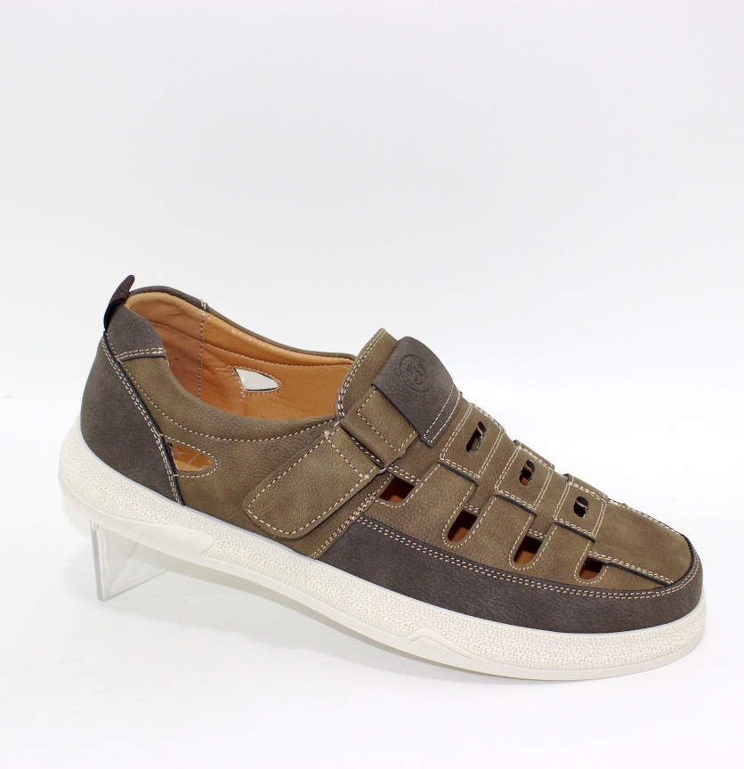 Стильні коричневі чоловічі літні туфлі на липучці