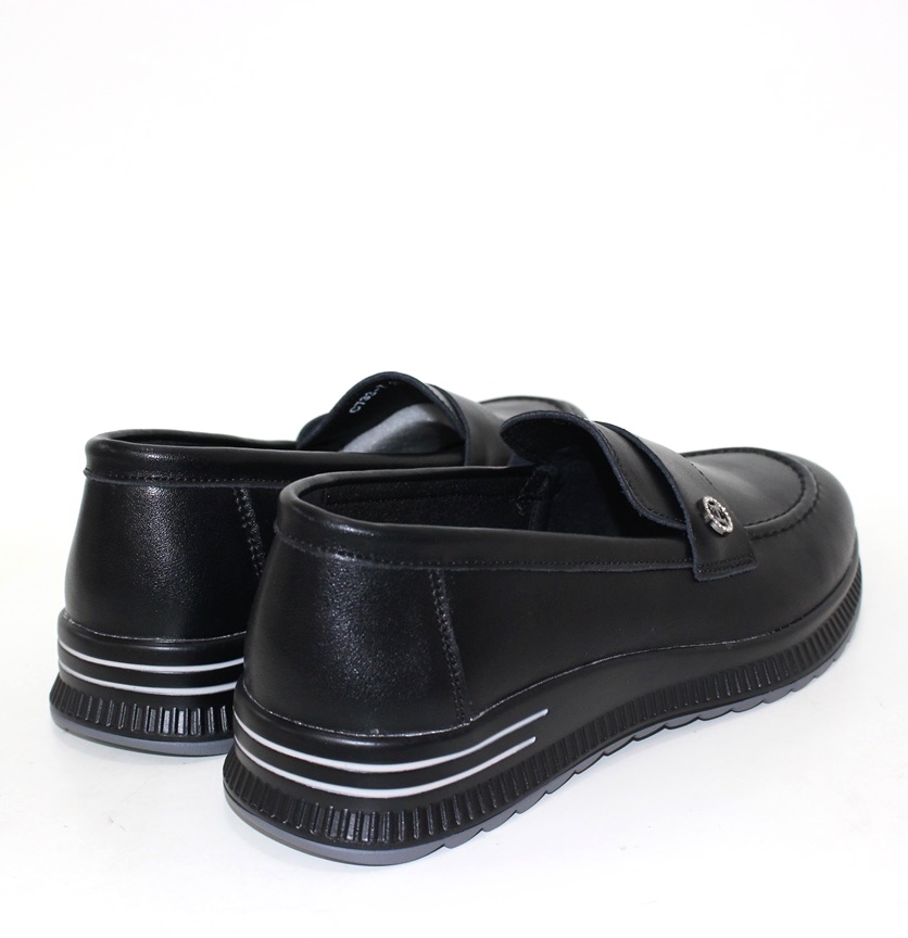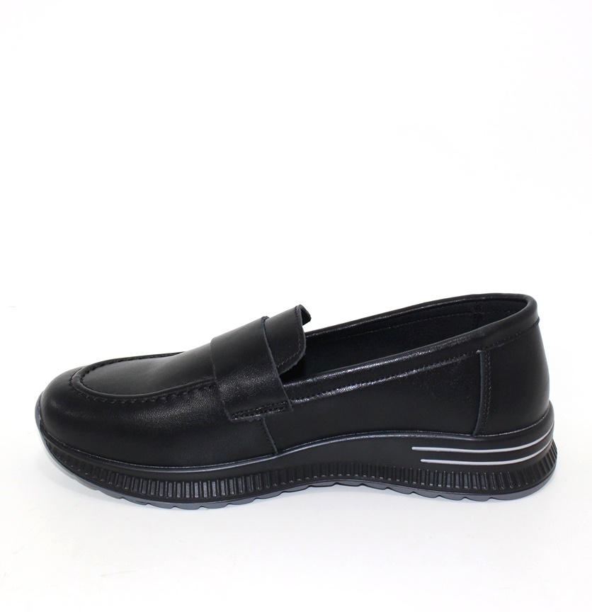 Жіночі чорні туфлі з натуральної шкіри на низькій платформі