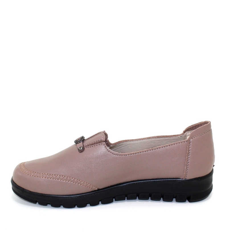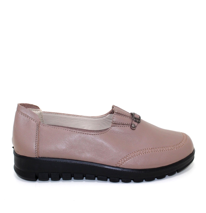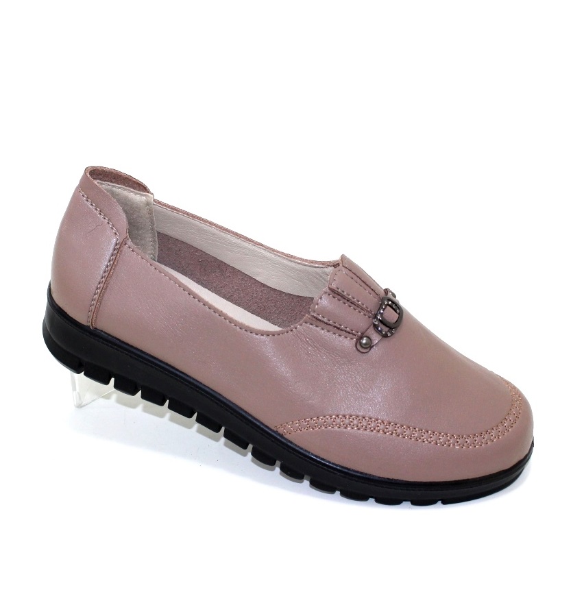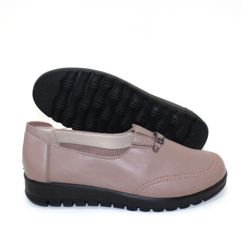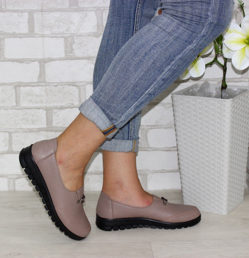 Жіночі коричневі туфлі попереду на резинці декоративані ремінцем.