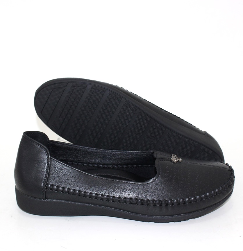 Чорні жіночі туфлі з декоративною брошкою