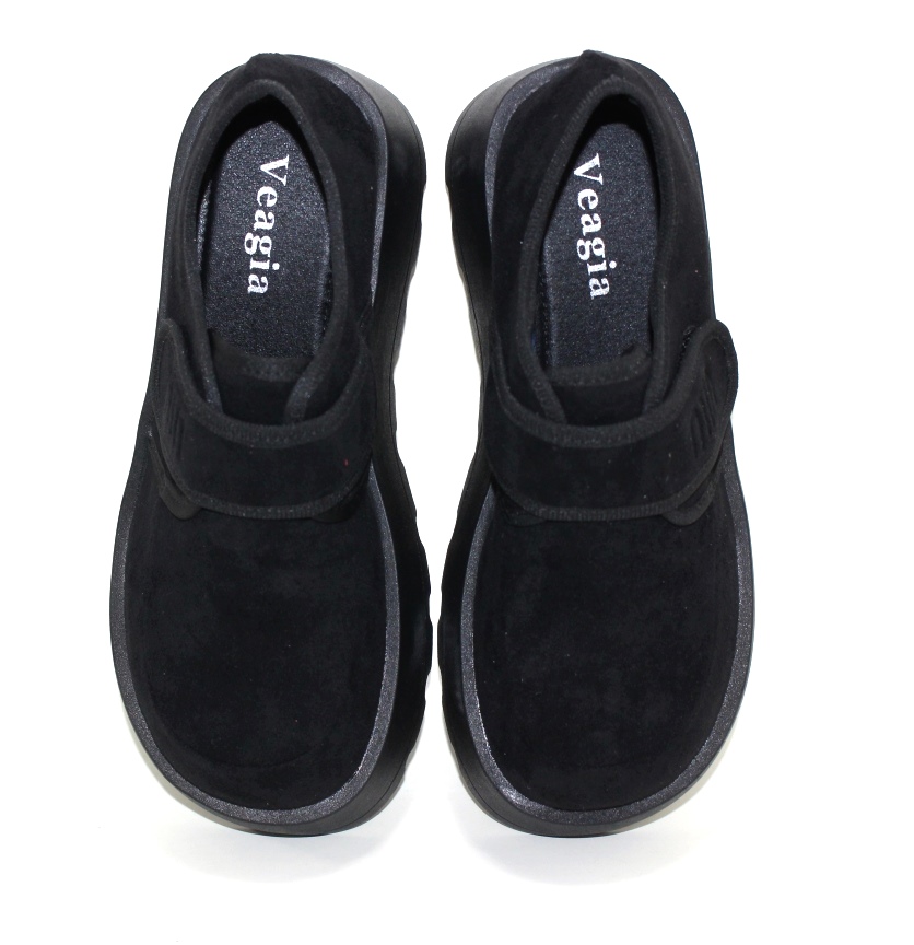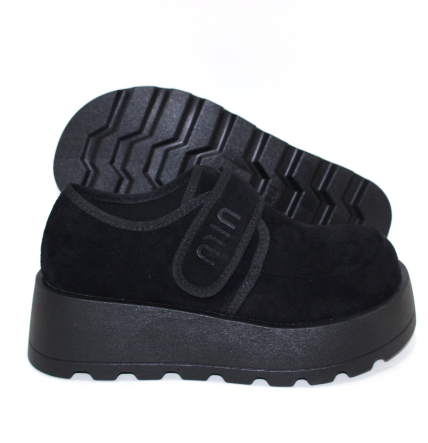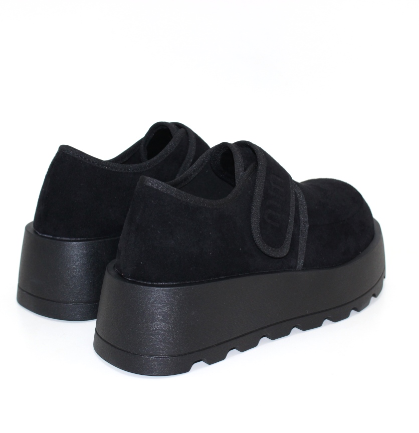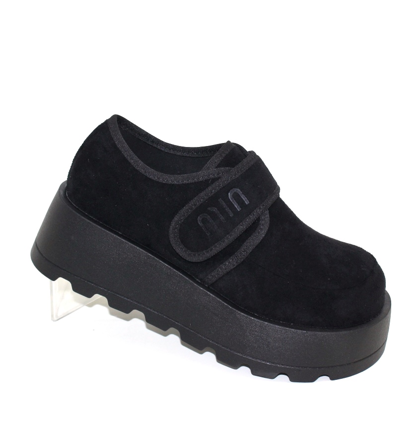 Чорні жіночі замшеві туфлі на платформі з липучкою