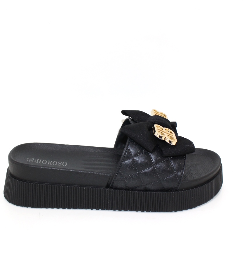 Модні чорні жіночі шльопанці з бантом